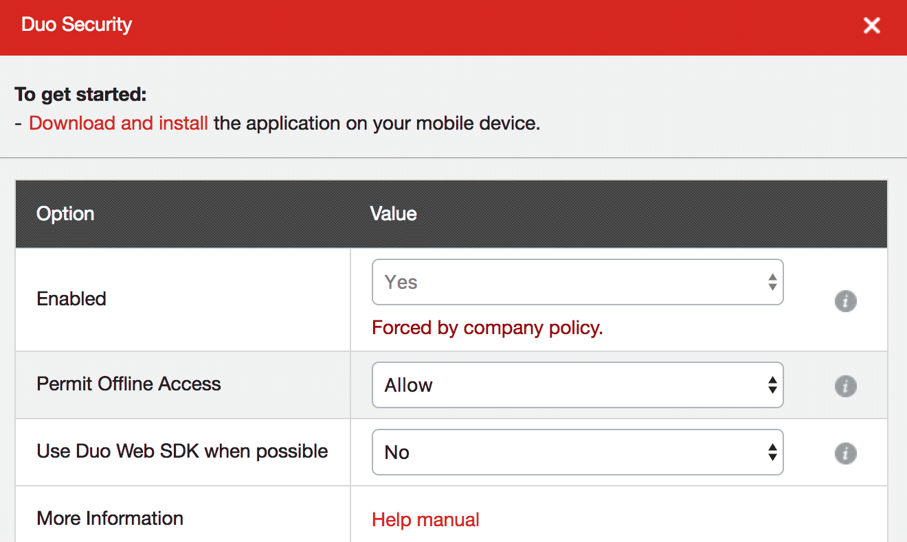 Be sure to enable the Use Duo Web SDK when possible option in your multifactor authentication policy so that web and browser extension logins to LastPass use the Duo Universal Prompt. Users of the LastPass browser extension should update to version 4.129 or later.